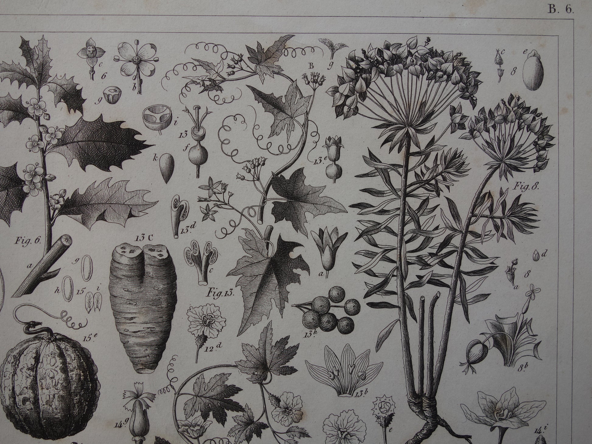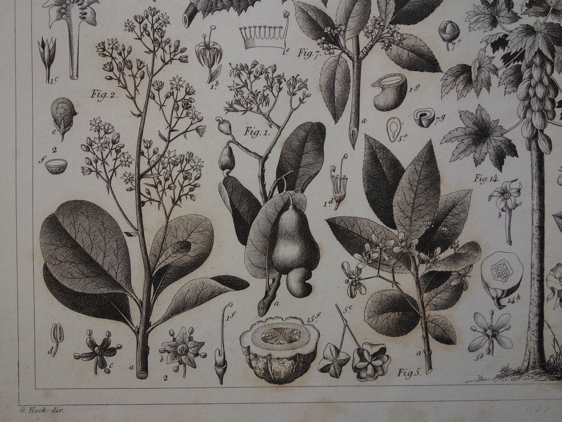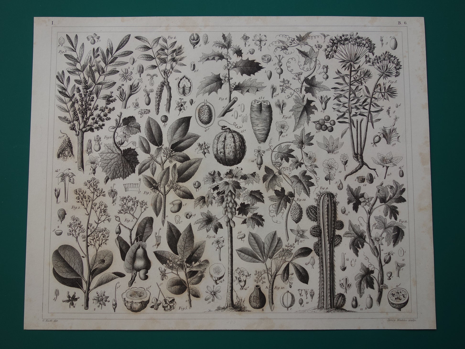 Über 170 Jahre alter botanischer Druck der Wassermelone Original antike Pflanzenillustration Papaya Stechpalme Gummibaum