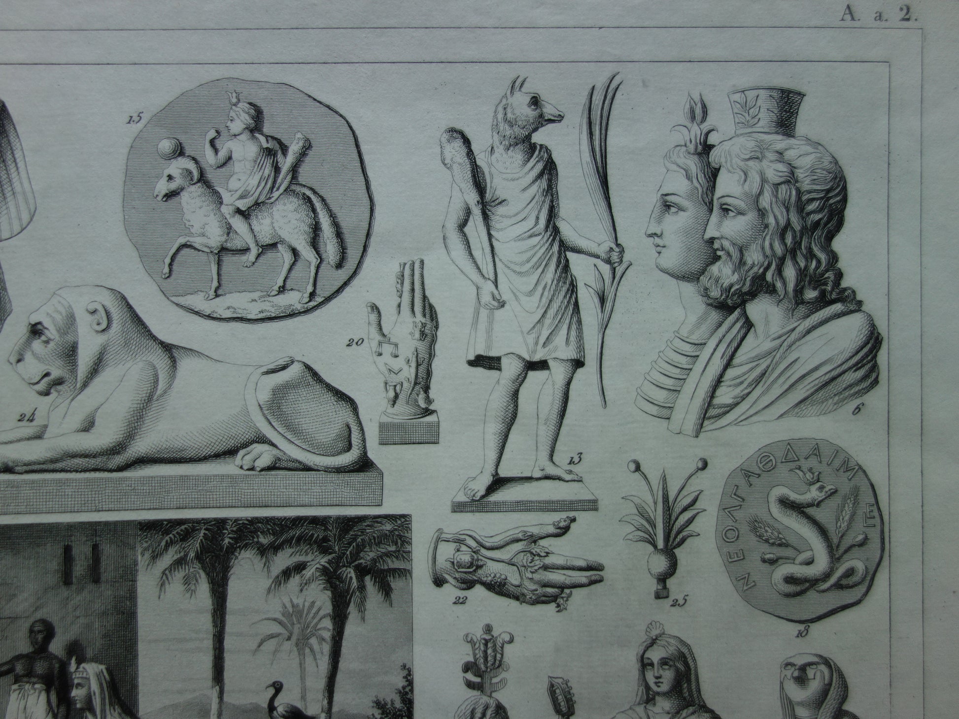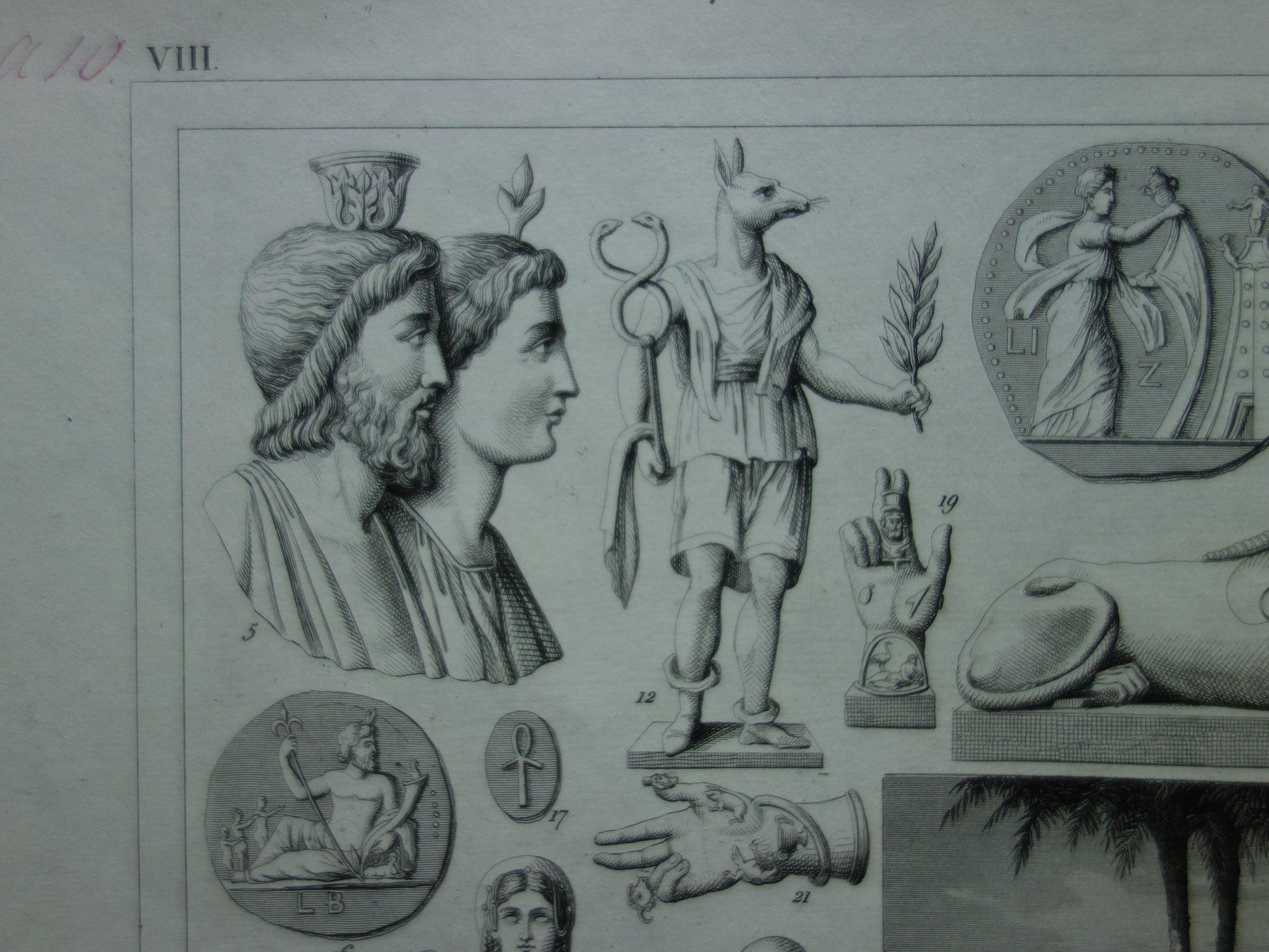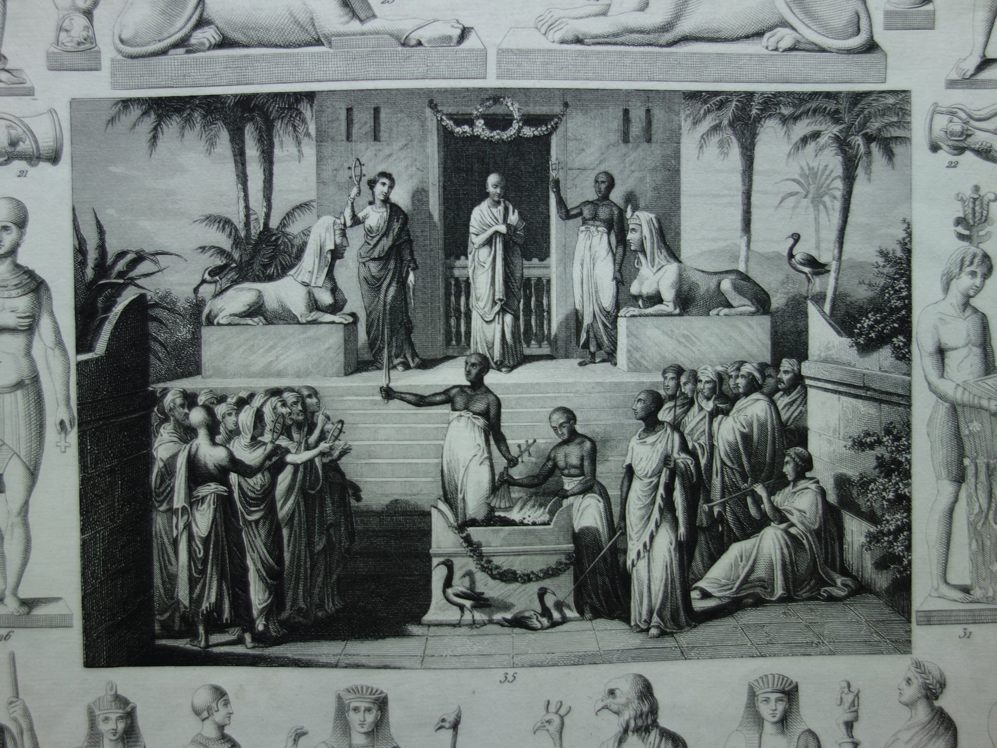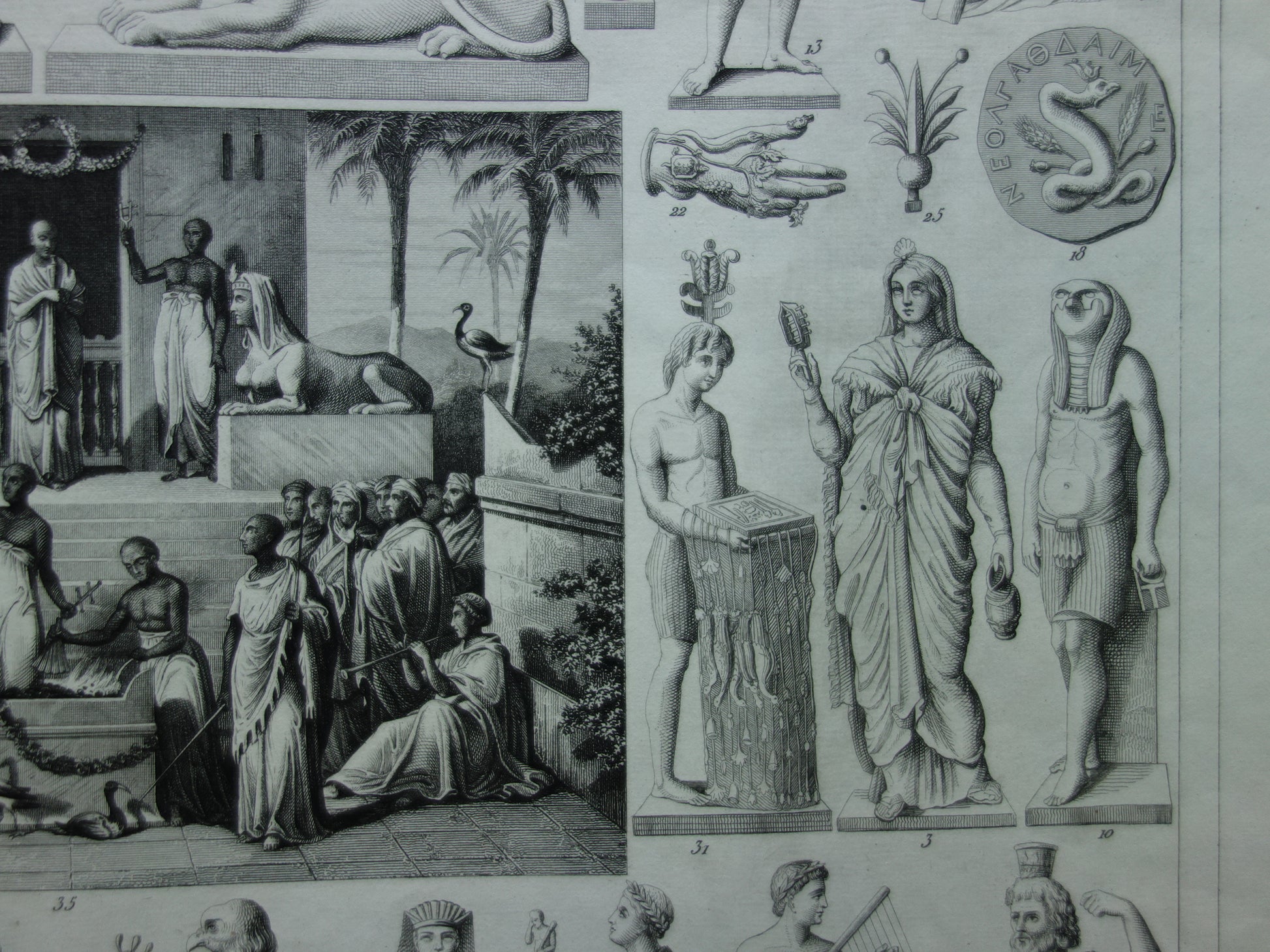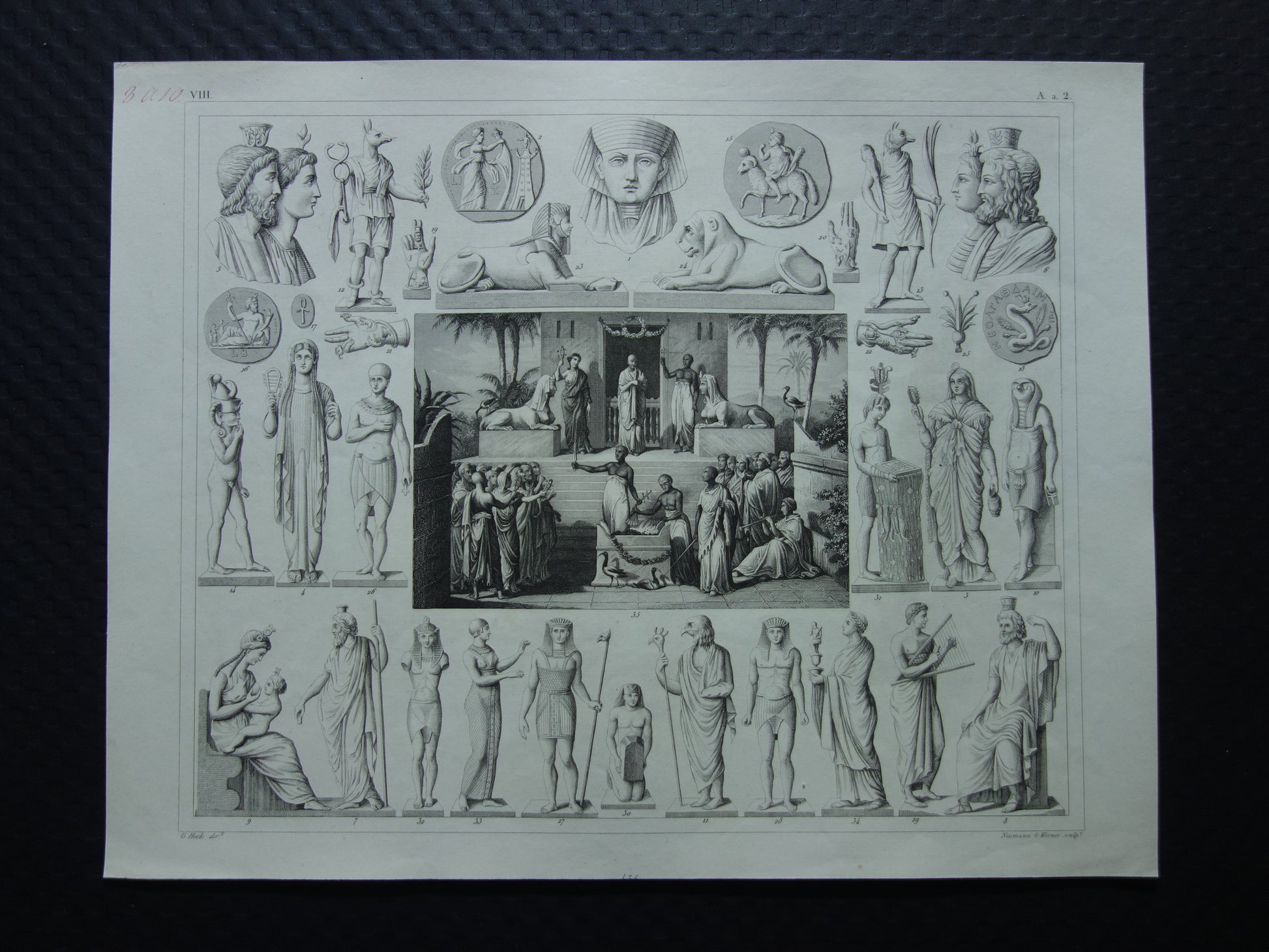 For sale is a beautiful old historical print depicting Egyptian gods. Among them are Anubis, Isis, Osiris, and Horus. The last photo is of the index (in old German) of what is depicted. It has wide margins all around and is very suitable for framing.