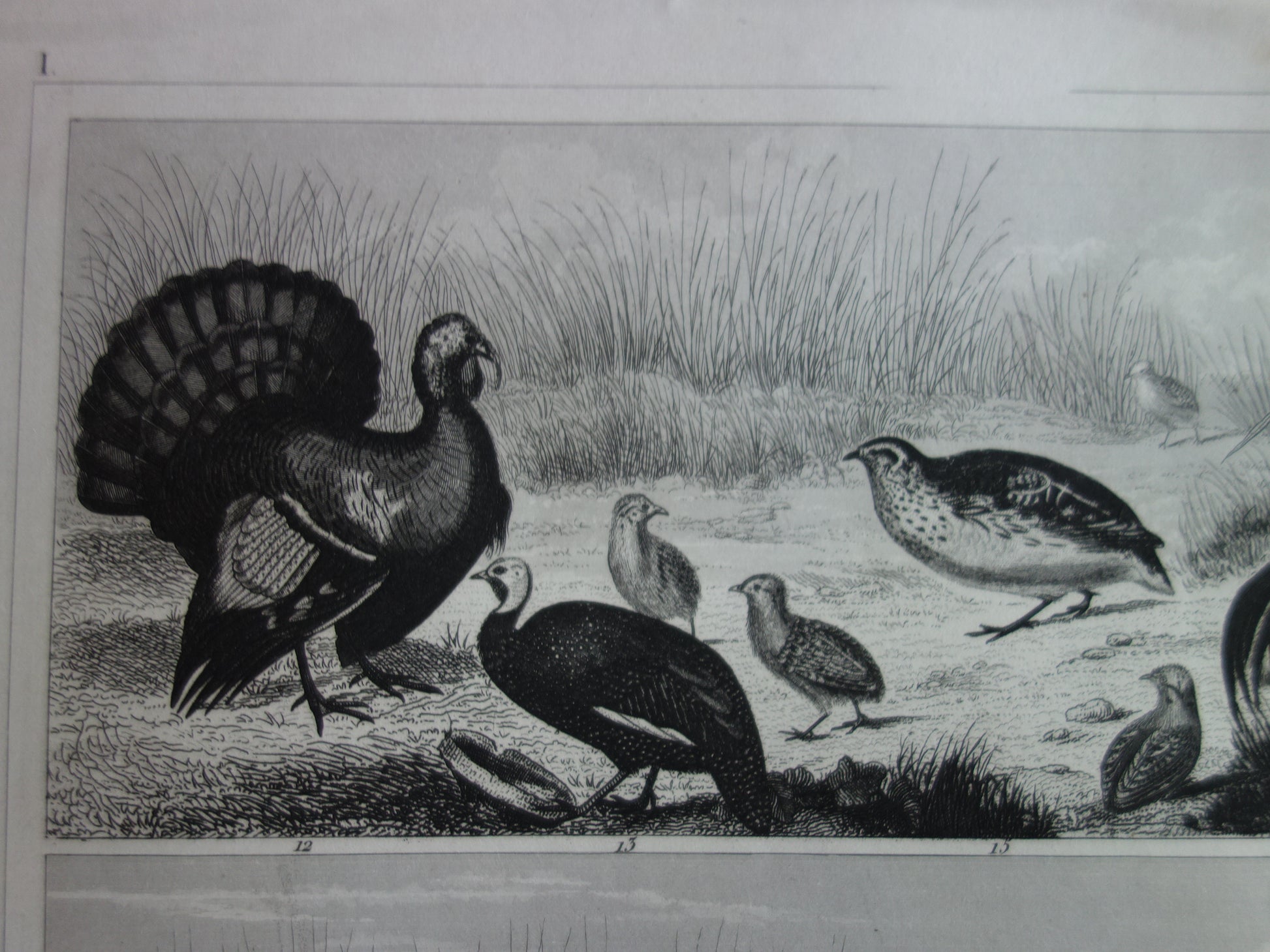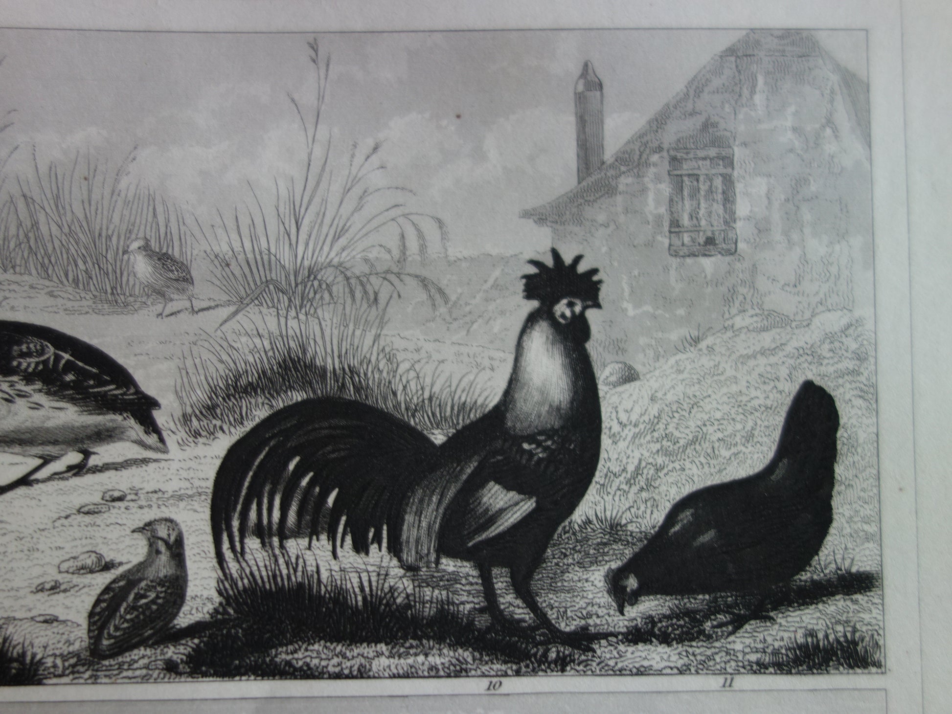 BIRDS antique print original 170+ year old illustration of chicken rooster turkey quail vintage bird print