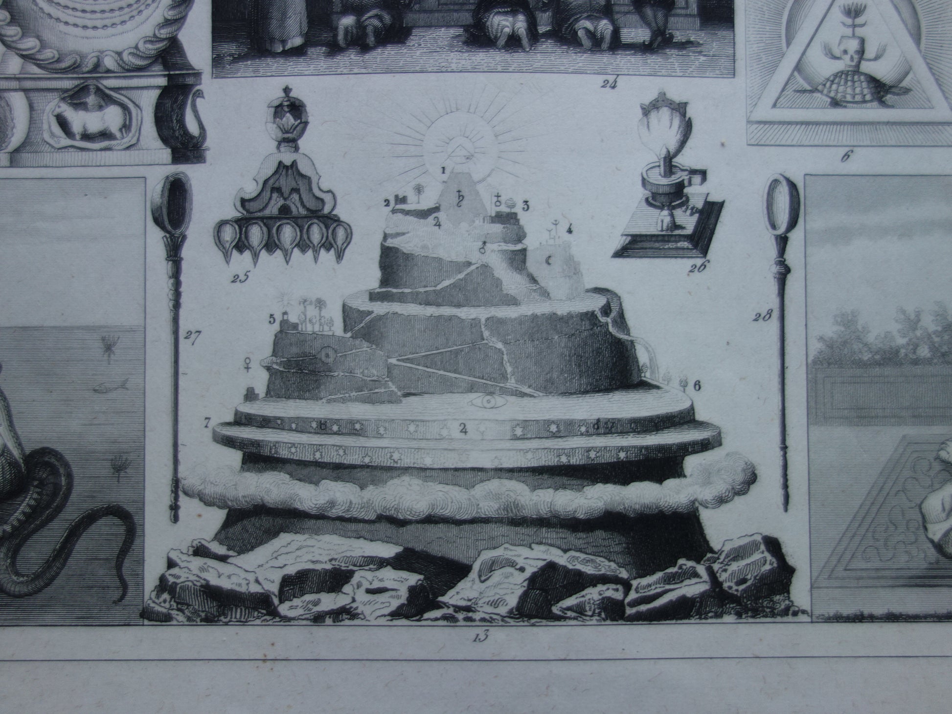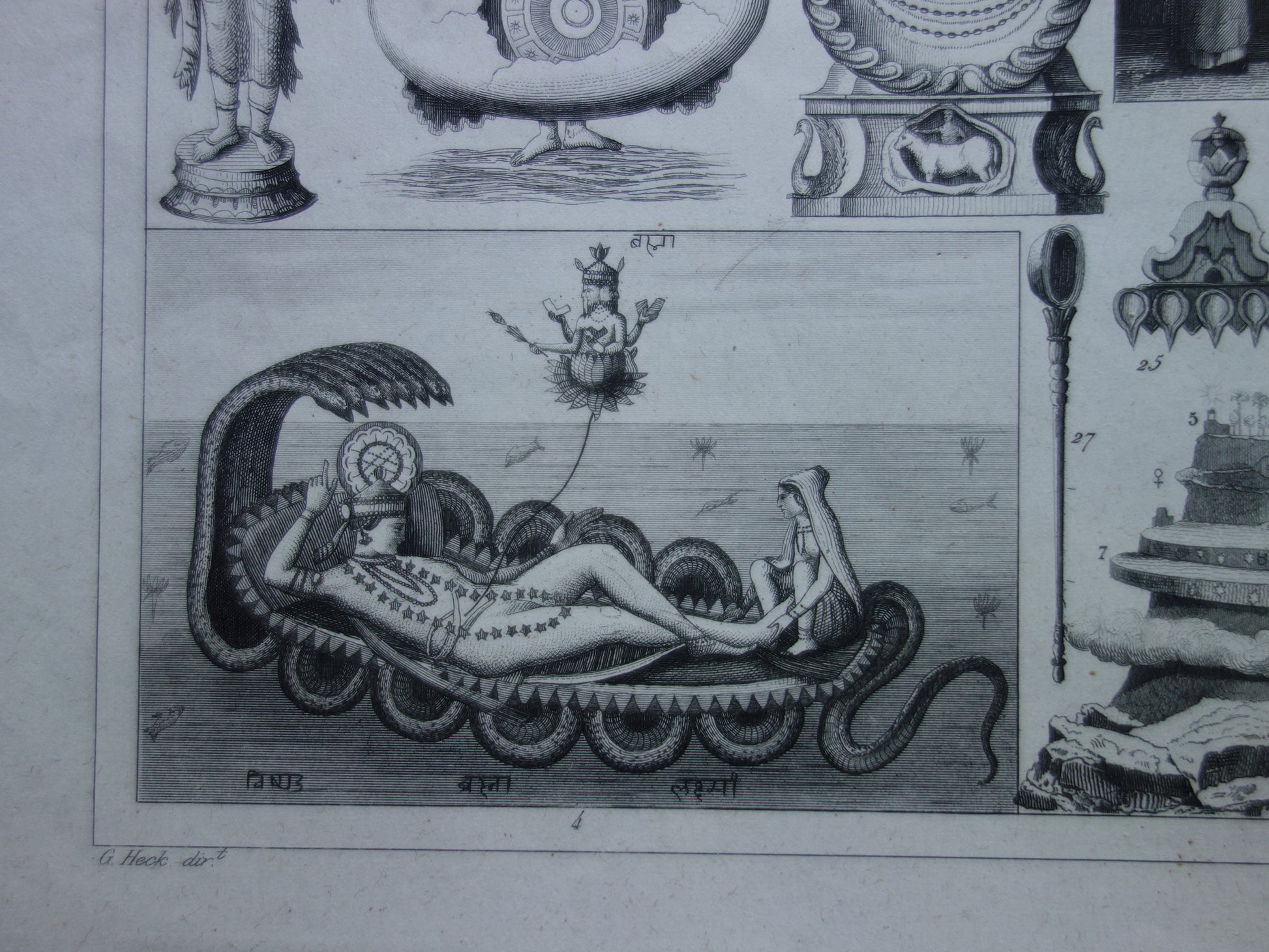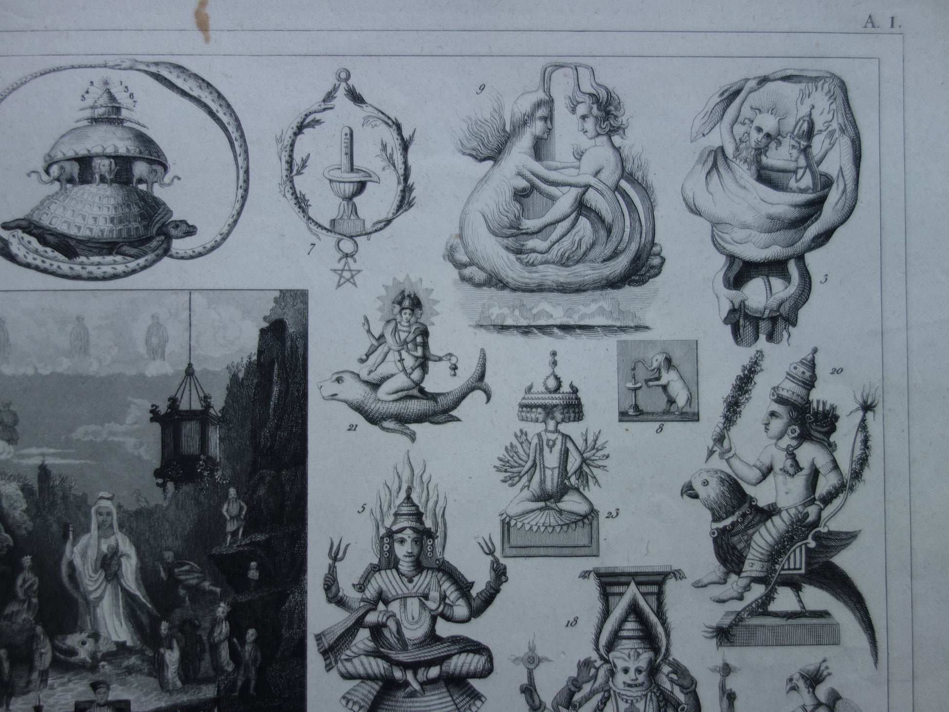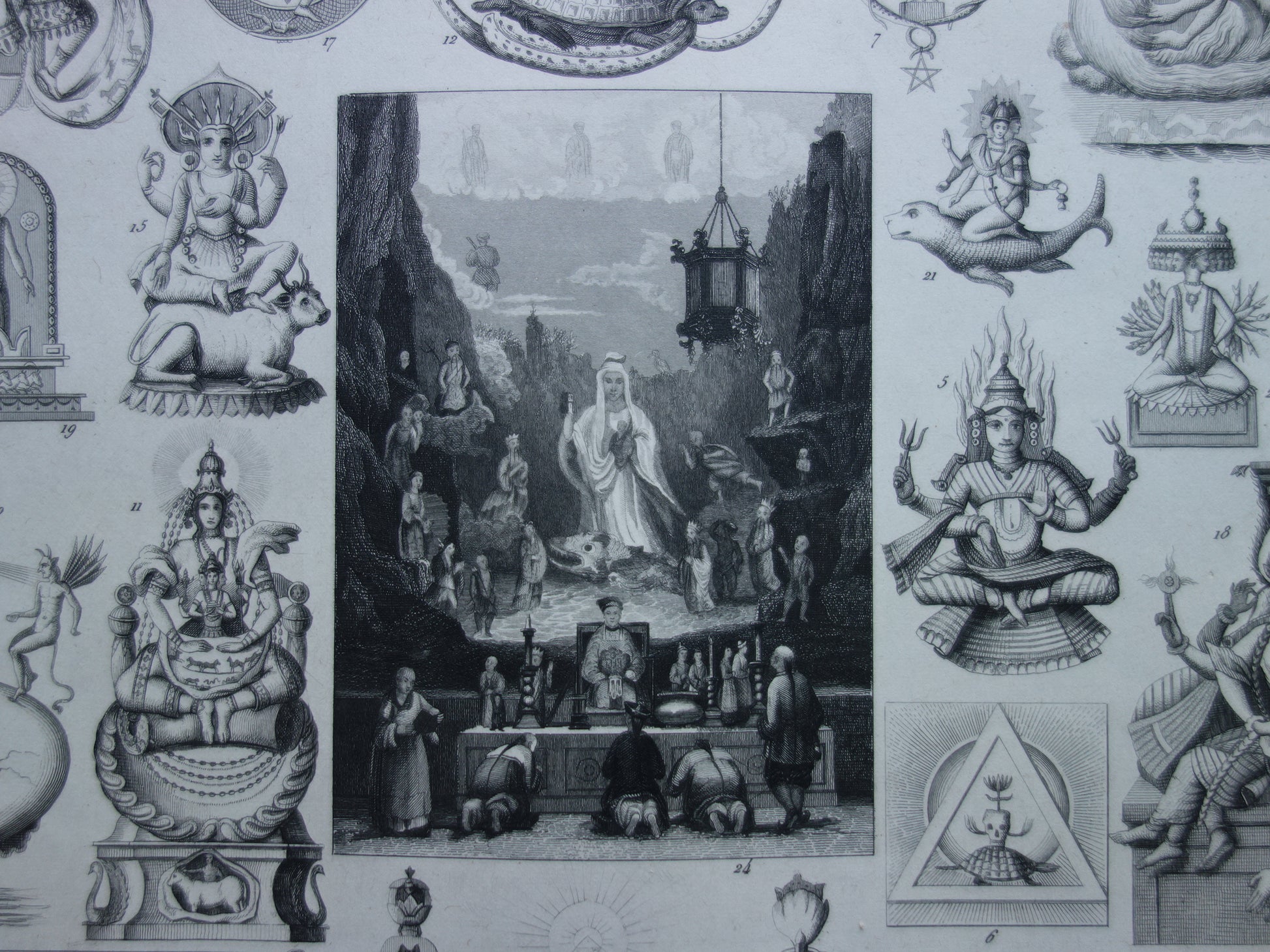 Boeddhisme antieke print Originele 175+ jaar oude prent illustratie Boeddhistische priesters antieke print Goden Priester Brahma Vishnu Shiva vintage religie prenten