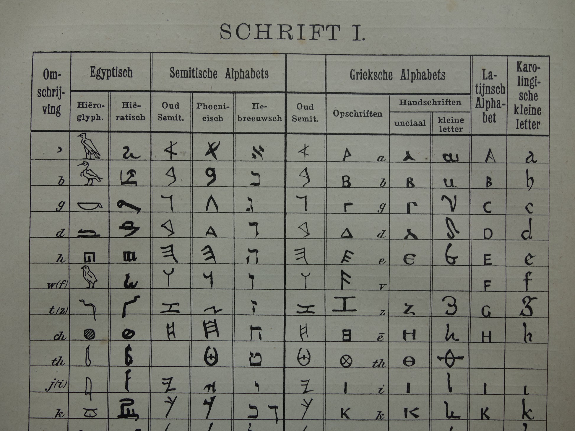 Geschiedenis van het Alfabet - antieke Nederlandse prent