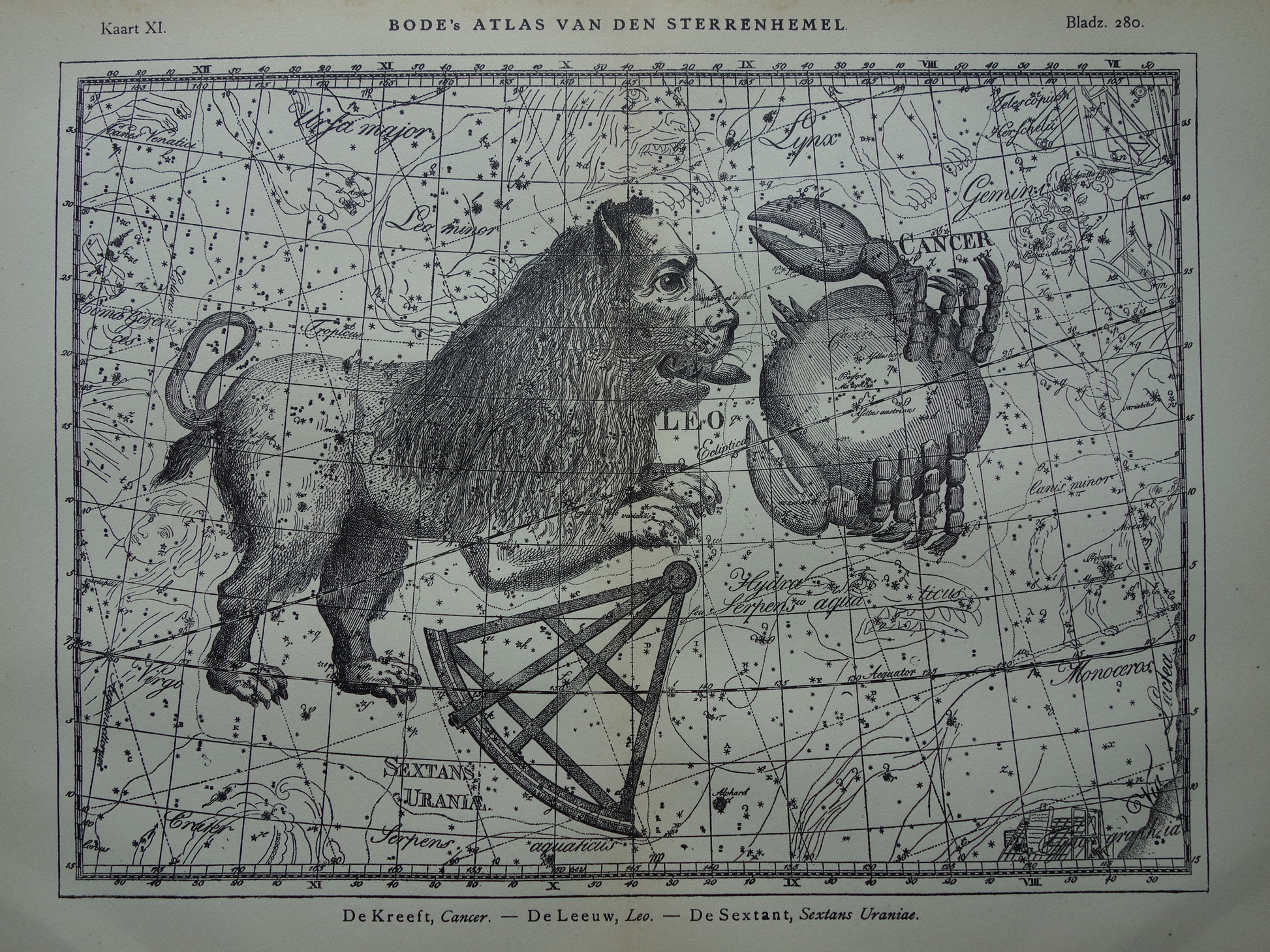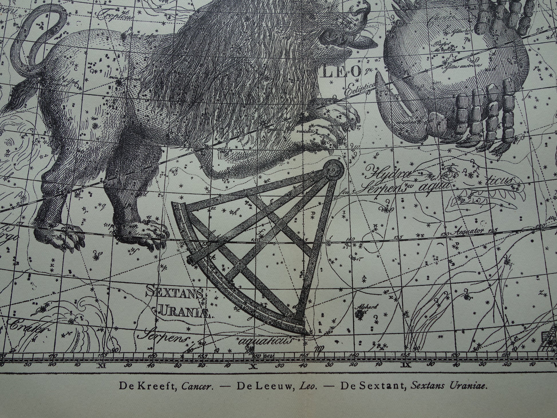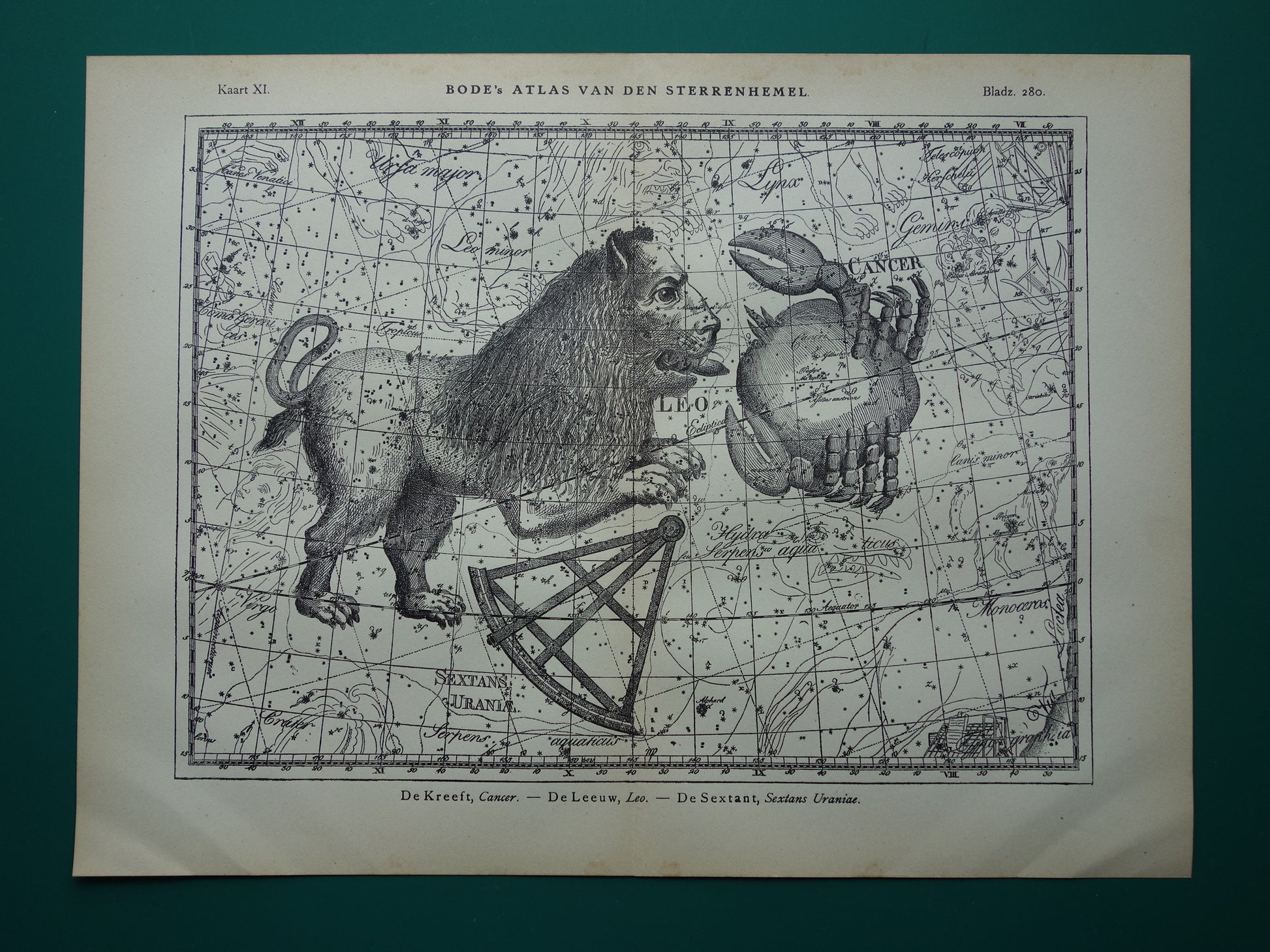 Leeuw en Schorpioen Oude astrologie prent van sterrenbeeld - Antieke sterrenkaart astronomie - Sterrenbeelden vintage print