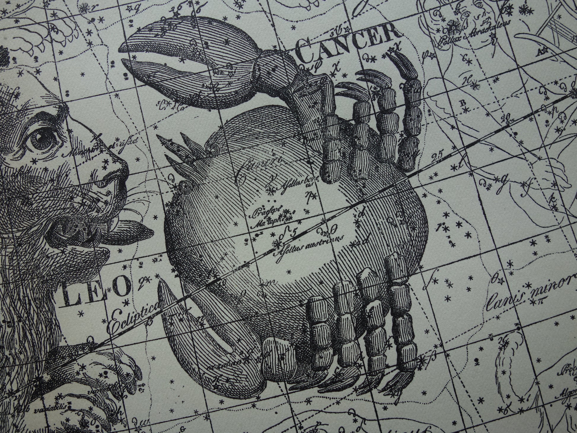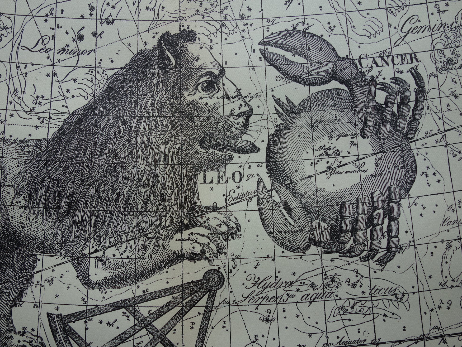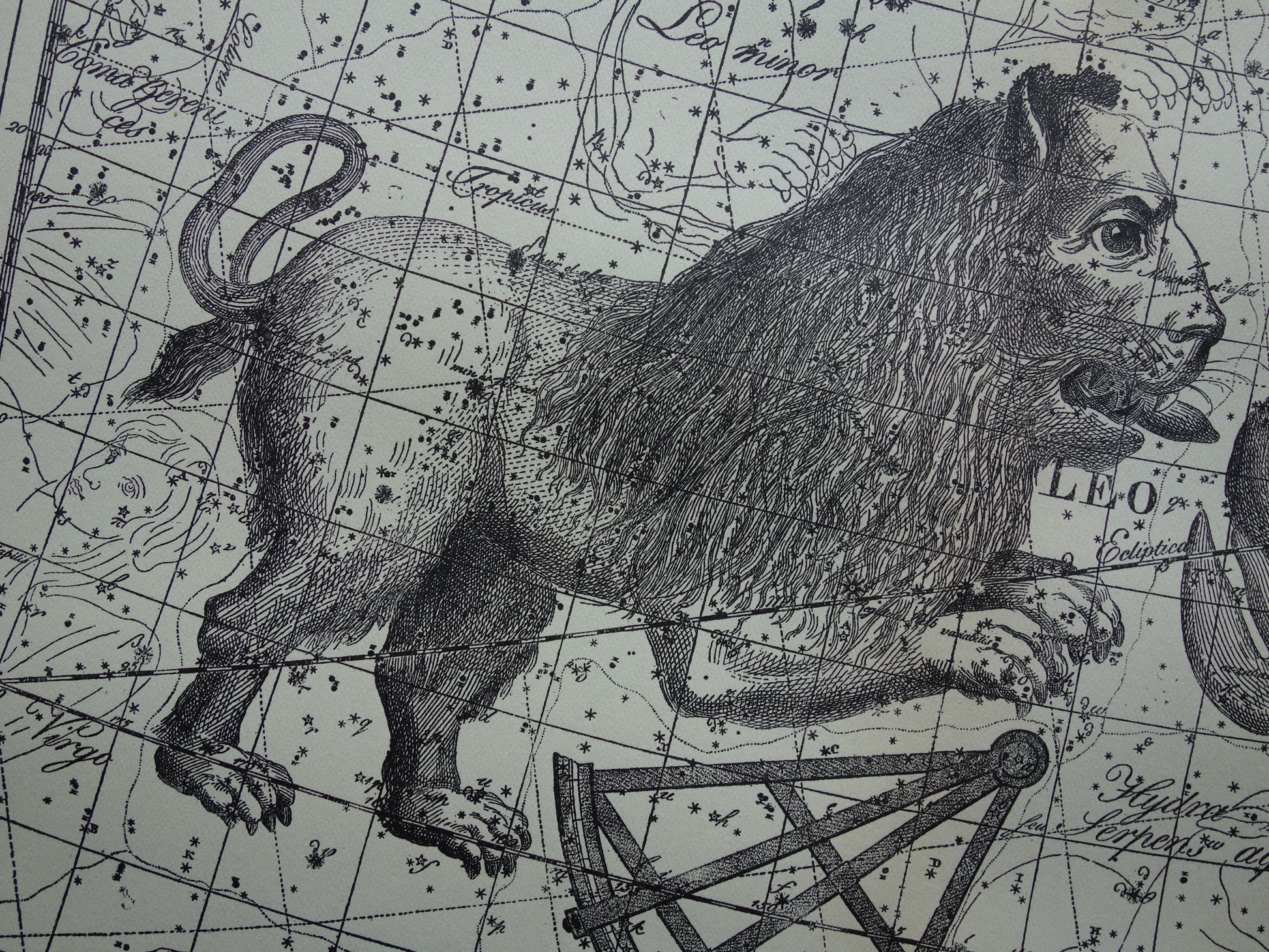 Leeuw en Schorpioen Oude astrologie prent van sterrenbeeld - Antieke sterrenkaart astronomie - Sterrenbeelden vintage print