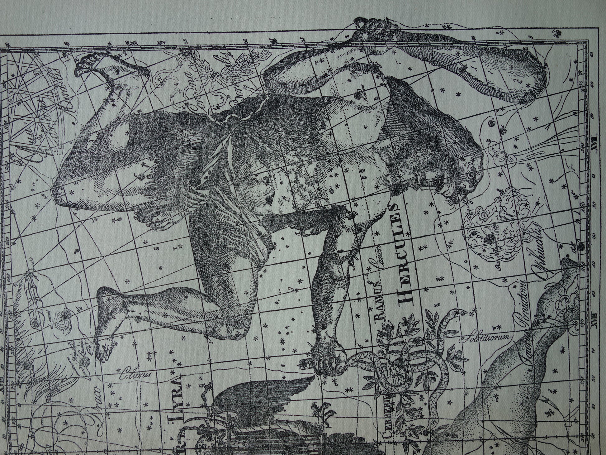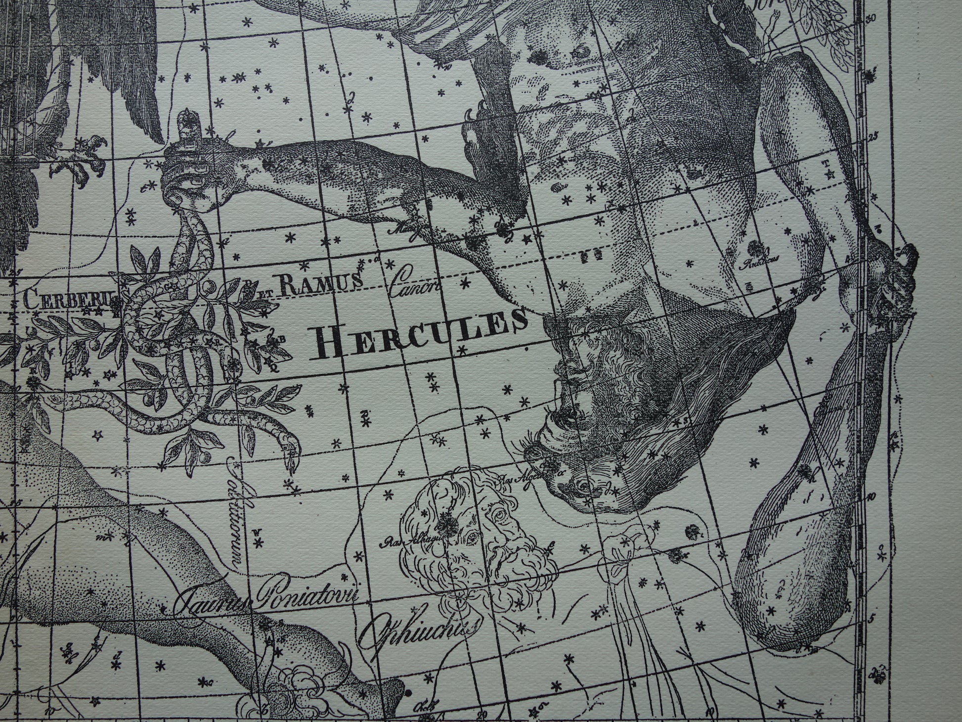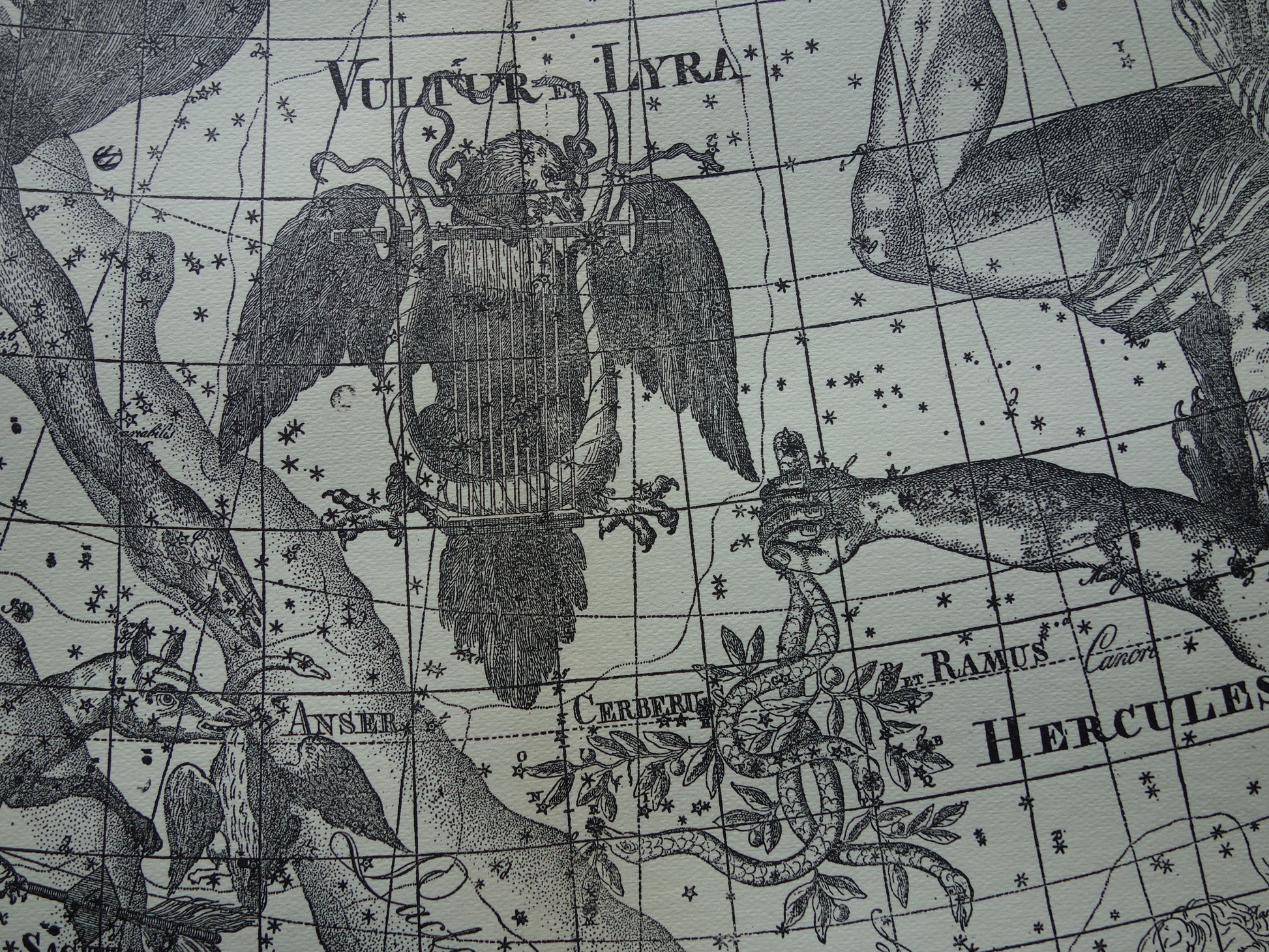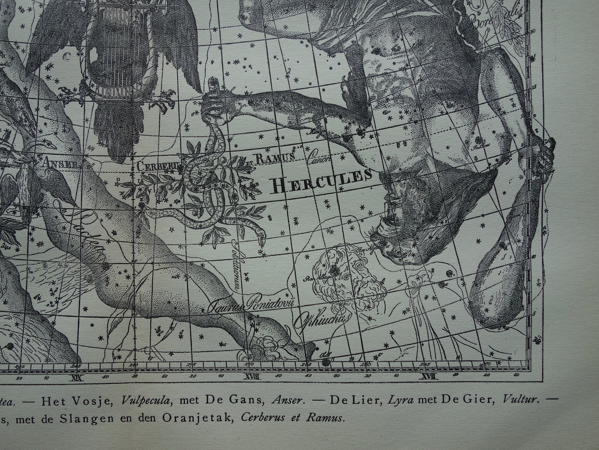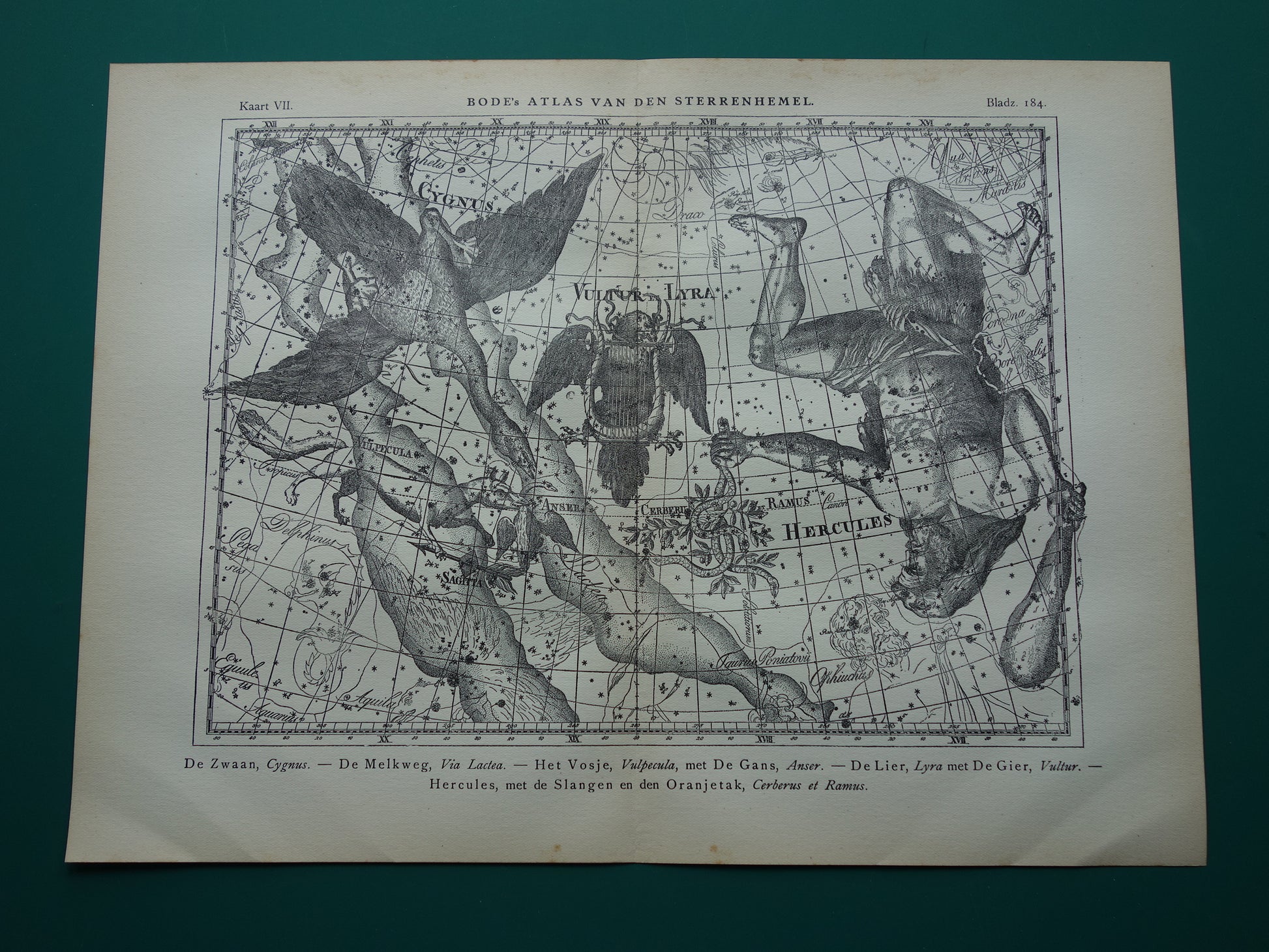 Oude astronomie prent van sterrenbeelden Hercules Cygnus en Vultur Lyra Antieke sterrenkaart astrologie sterrenbeeld vintage print