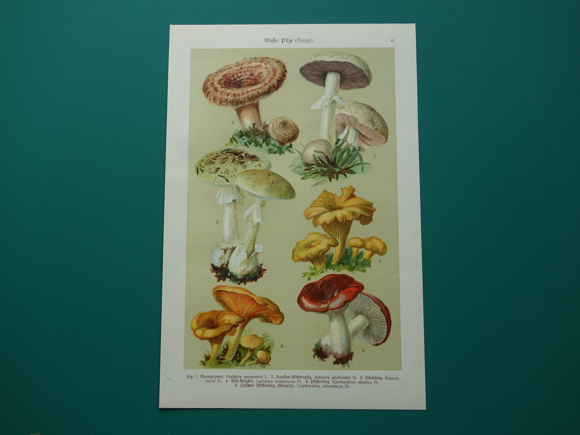 Oude botanische prent Paddenstoelen 1911 originele antieke Paddenstoel illustratie Duitse botanie prenten