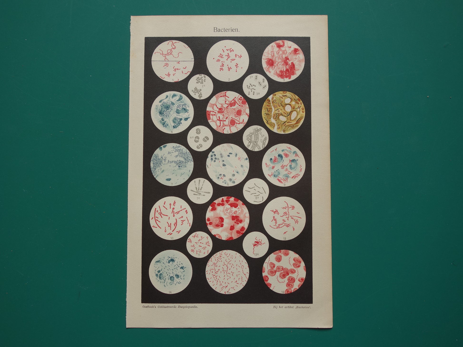 BACTERIE Oude Nederlandse prent over bacteriën Antieke illustratie uit 1925