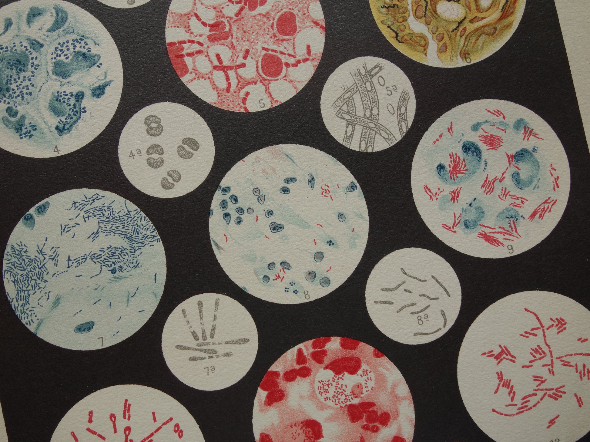 Te koop is een kleine oude Nederlandse prent over bacteriën.