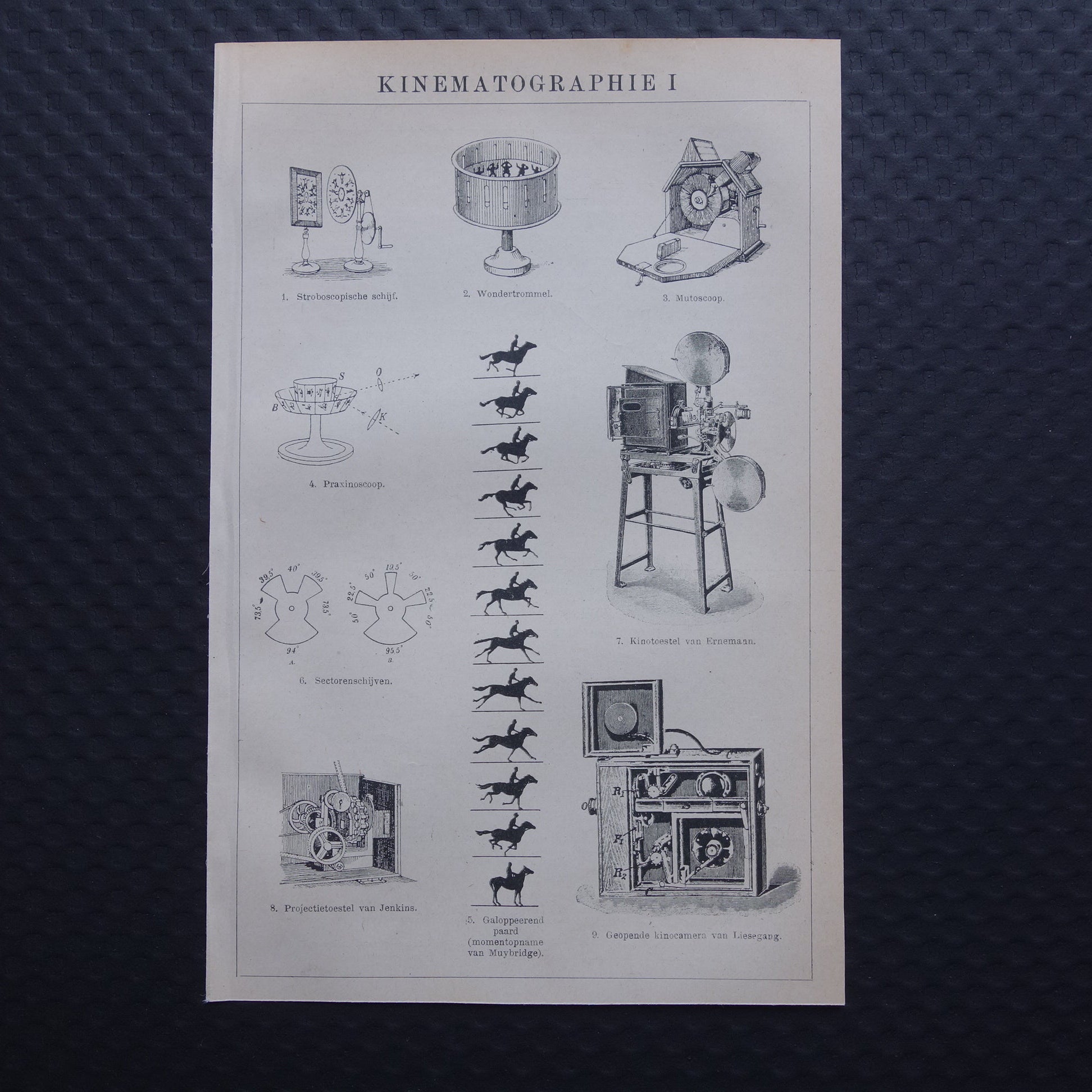 Te koop is een oude Nederlandse prent over cinematographie. De prent is dubbelzijdig.
