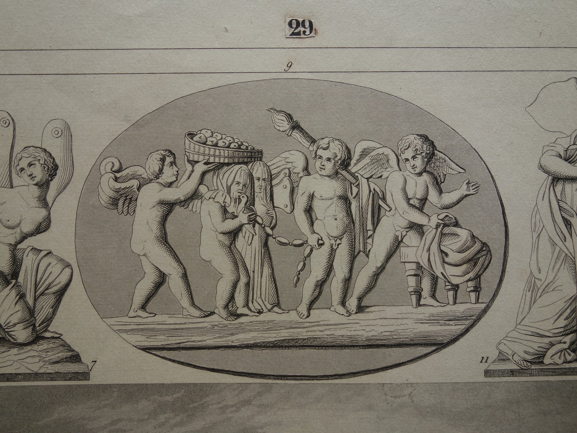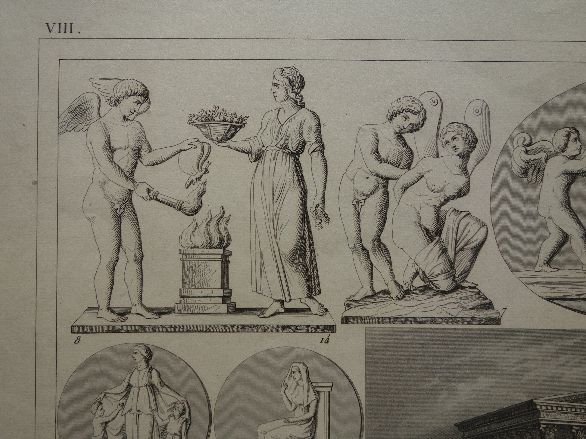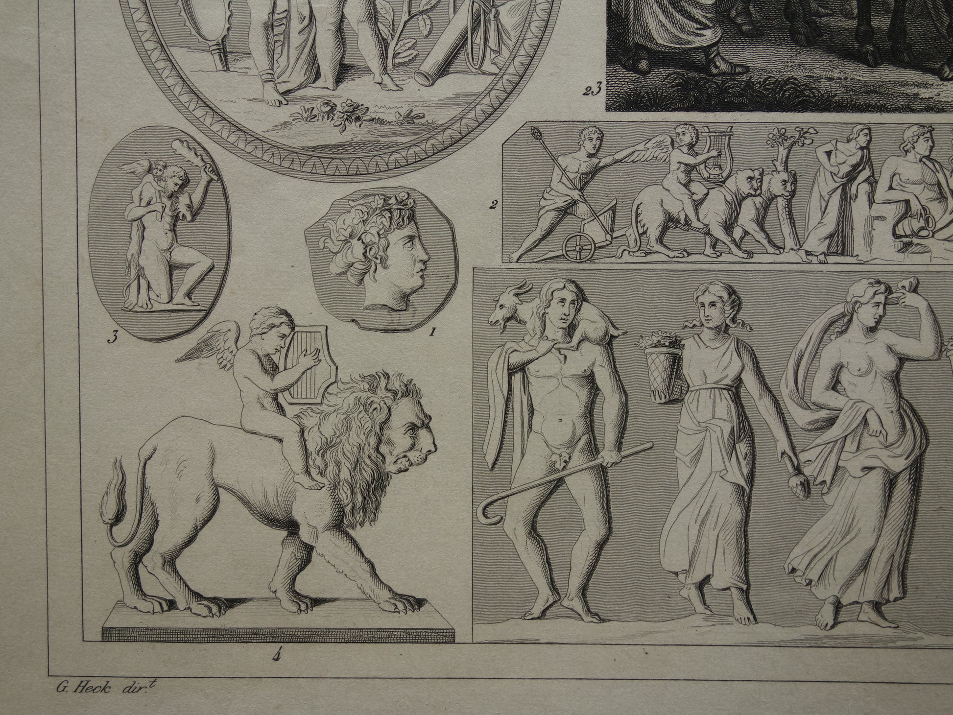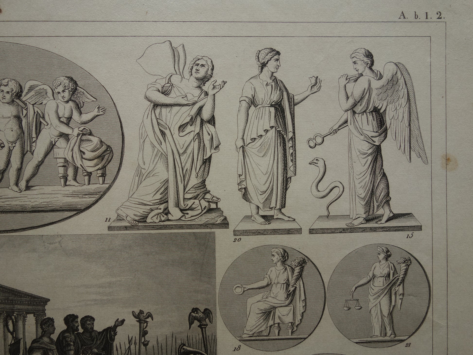 Griekse en Romeinse goden antieke print Originele 175+ jaar oude illustratie God Sculpturen Amor Eros vintage religie prenten oudheid