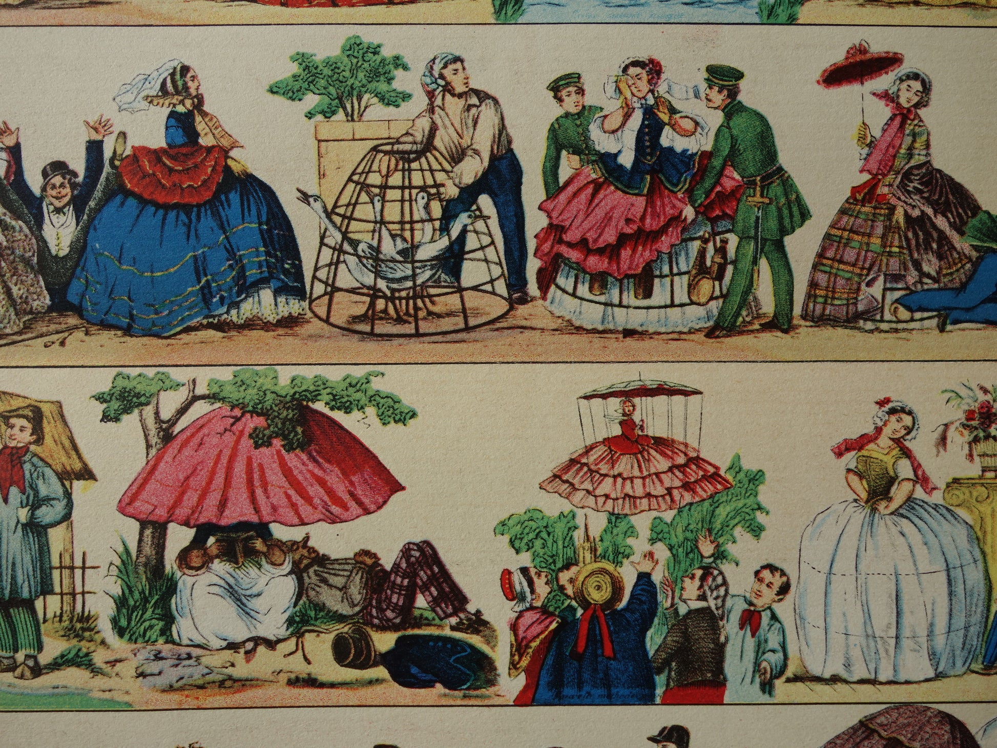 HOEPELROK Oude Duitse prent over crinoline Antieke illustratie uit 1903 petticoat